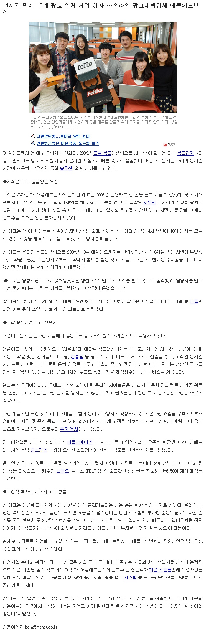 [언론보도] "대구 젊은이들 발상을 바꿔라"…애플애드벤처 장기진 대표 2013-02-22 |